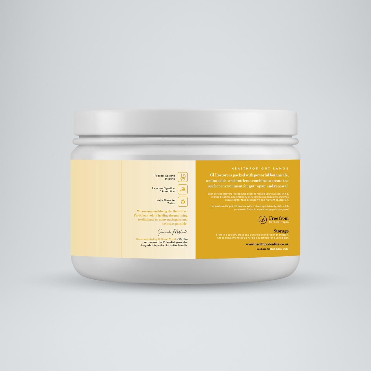 GI Restore is a comprehensive gut support supplement designed to promote intestinal healing, reduce inflammation, and support digestive health through a synergistic blend of targeted nutrients: